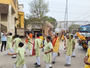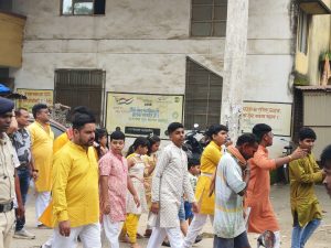 विघ्न विनाशक गणेश समिति द्वारा आकर्षक सज्जा की गई थी आगे आगे समिति के सदस्य एक कलर के परिधान पहन कर शोभा यात्रा को चार चांद लगा रहे थे ।
