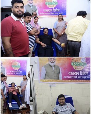 जिला महामंत्री मनीष अग्रवाल ने कहा कि पूरे देश मे आज प्रधानमंत्री जी के जन्मदिवस के अवसर पर सेवा पखवाड़ा अभियान का शुभारंभ हुआ है जिसमें पत्थलगांव अस्पताल में आज जिला स्तरीय रक्तदान शिविर चलाया जा रहा है यह रक्त जिले में रक्त की कमी से जूझ रहे व्यक्तियों के जरूर काम आएगा।