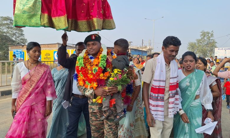 पत्थलगांव पहुँचे रिटायर्ड फौजी पन्नेलाल , परम्परा संग हुआ अनोखा सम्मान