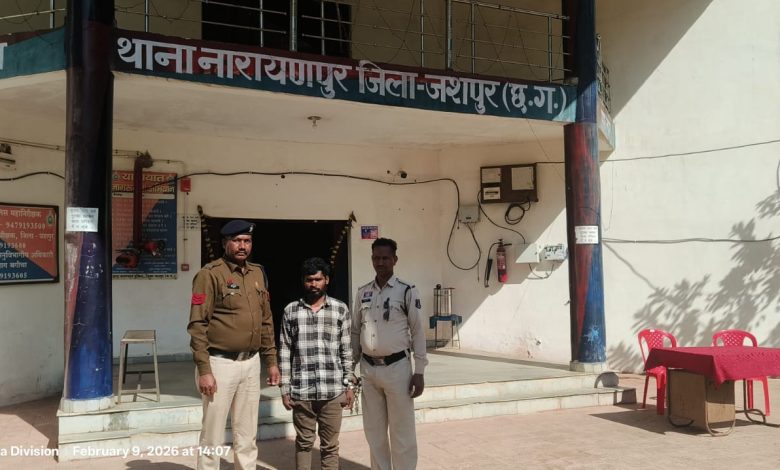 मामला इस प्रकार है कि दिनांक 06.02.26 को प्रार्थी जेठू विश्वकर्मा उम्र 45 वर्ष, निवासी ग्राम बेलसुंगा थाना नारायणपुर के द्वारा थाना नारायणपुर में सूचना दिया गया था कि, उसकी बेटी मृतिका कमला विश्वकर्मा , जो कि चौकी दोकड़ा क्षेत्रांतर्गत ग्राम ढोढ़ीबहार निवासी आरोपी स्वदेश उर्फ सुदेश राम कोरवा से प्रेम करती थी, अतः कुछ वर्ष पूर्व वह, आरोपी स्वदेश उर्फ सुदेश राम कोरवा के पास रहने चली गई थी, आरोपी स्वदेश उर्फ सुदेश राम कोरवा, उसकी बेटी मृतिका कमला विश्वकर्मा को पत्नी बनाकर रखा था, वर्तमान में दोनों की एक दो वर्षीय बेटी है, व उसकी मृतिका बेटी कमला विश्वकर्मा 06 माह की गर्भवती थी, करीबन जनवरी माह से प्रार्थी की मृतिका बेटी कमला व दामाद आरोपी स्वदेश, प्रार्थी के घर ग्राम बेलसुंगा में रह रहे थे, जहां आरोपी स्वदेश ग्राम रनपुर के एक व्यक्ति का ट्रेक्टर को चलता था,। घटना से तकरीबन 01 सप्ताह पूर्व, आरोपी स्वदेश उर्फ सुदेश राम कोरवा अपनी पत्नी मृतिका कमला विश्वकर्मा व अपनी 02 वर्ष की बेटी को लेकर थाना नारायणपुर क्षेत्रांतर्गत ही ग्राम ढोठीपहरी, कुरूम ढोढा में अपने नाना के घर लेकर गया था व वहीं रह रहा था। घटना दिनांक 06.02.2026 को शाम करीब 07.30 बजे दोनों पति पत्नि के मध्य सब्जी बनाने की बात को लेकर विवाद हुआ और आरोपी स्वदेश उर्फ सुदेश राम ने आवेश में आकर, पास पड़े डंडे से अपनी पत्नि मृतिका कमला के साथ मारपीट करते हुए उसके सिर पर वार कर दिया, जिससे कि कमला की मृत्यु हो गई, फिर आरोपी स्वदेश उर्फ सुदेश राम अपनी 02 साल की बच्ची को लेकर वहां भाग गया था। प्रार्थी की रिपोर्ट पर थाना नारायणपुर पुलिस के द्वारा मर्ग इंटीमेशन कायम कर, घटना स्थल के लिए रवाना होकर,शव पंचनामा की कार्यवाही की गई। घटना स्थल का फॉरेसिंक अधिकारी से निरीक्षण कराया तथा मृतिका के नवविवाहिता होने से दंडाधिकारी बगीचा से भी शव पंचनामा कराया । पुलिस के द्वारा मृतिका कमला विश्वकर्मा के शव का डॉक्टर से पोस्ट मार्टम कराया गया।डॉक्टर के द्वारा शॉट पीएम रिपोर्ट में मृतिका की मृत्यु का कारण मारपीट से आई चोट के कारण हत्यात्मक लेख करने पर पुलिस के द्वारा आरोपी स्वदेश उर्फ सुदेश राम कोरवा के विरूद्ध थाना नारायणपुर में अपराध क्रमांक 14/2026 धारा 103(3) बीएनएस कायम कर विवेचना में लिया गया था। थाना नारायणपुर पुलिस की टीम के द्वारा आरोपी स्वदेश राम उर्फ सुदेश राम कोरवा की पता साजी करते हुए, उसे उसके गृह ग्राम ढोढीबहार चौकी दोकड़ा जिला जशपुर (छ०ग०) से हिरासत में ले लिया गया।