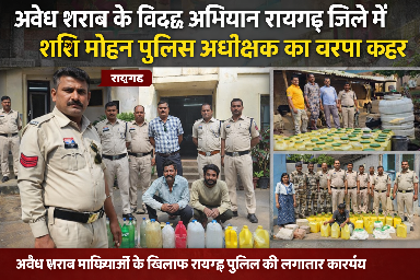 आबकारी विभाग के काम को संभाल रही पुलिस विभाग आबकारी विभाग कुंभकर्णी निंद्रा में मस्त रायगढ़ जिले में पुलिस कप्तान शशि मोहन सिंह का बरप रहा कहर जिले में “ऑपरेशन आघात” के तहत एक ही दिन 919 लीटर अवैध शराब और 2 बाइक जब्त — 36 आरोपी गिरफ्तार