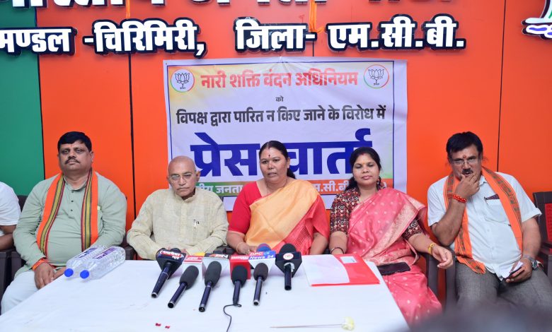 सरगुजा विकास प्राधिकरण की उपाध्यक्ष एवं विधायक गोमती साय ने महिला आरक्षण बिल को लेकर विपक्ष पर जोरदार हमला बोला है। एम.सी.बी. जिला अंतर्गत चिरमिरी स्थित भाजपा मंडल कार्यालय में आयोजित प्रेसवार्ता में उन्होंने साफ शब्दों में कहा कि “विपक्ष नहीं चाहता कि देश की महिलाएं सशक्त हों, इसलिए वे इस ऐतिहासिक बिल की राह में अड़ंगे डाल रहे हैं।”