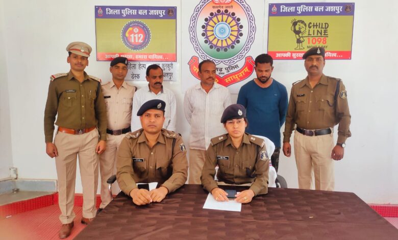 जान जोखिम में डालकर जसपुर जिले की पुलिस ने आंध्र प्रदेश के लाल चंदन गिरोह के 3 लोगों को दबोचा जशपुर पुलिस अधीक्षक की कार्यशैली से आरोपियों की एक नहीं चली आरोपी एम. लोकेश कुमार, पी. वासुदेव रेड्डी एवं वी. वेंकट रम्मना चित्तुर (आंध्रप्रदेश) से किया गिरफ्तार