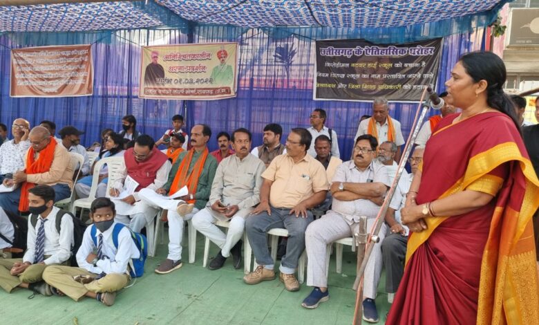 – शासकीय नटवर बहुउद्देशीय उच्चतर माध्यमिक विद्यालय रायगढ़ के अस्तित्व को बचाने 01 मार्च 2022 से चल रहे अनिश्चित कालीन धरना स्थल पर पहुंच कर रायगढ़ लोकसभा क्षेत्र सांसद श्रीमती गोमती साय ने अपना समर्थन दिया। और कहा कि रायगढ़ शहर में संचालित शासकीय नटवर बहुउद्देशीय उच्चतर माध्यमिक विद्यालय का नाम बदल कर स्वामी आत्मानंद अंग्रेजी माध्यम स्कूल कर दिया गया है और यंहा संचालित हिंदी माध्यम स्कूल को बंद करने की साजिश की जा रही है। हिंदी माध्यम स्कूल को बंद कर छत्तीसगढ़ की भूपेश बघेल की सरकार हज़ारो बच्चों के भविष्य से खिलवाड़ कर रही है। ये कांग्रेस की सरकार अंग्रेजों की बनाई नीति पर काम कर फिर ऐतिहासिक महत्व की पहचान को नष्ट कर रायगढ़ वासियों की भावनाओं के साथ खिलवाड़ कर रहे है। शासकीय नटवर बहुउद्देशीय उच्चतर माध्यमिक विद्यालय मात्र एक विद्यालय ही नही है यह रायगढ़ जिले के निवासियों की एक पहचान भी है। जिसे यहाँ के बच्चे युवा बड़े आन- बान – शान से बताते है कि यंहा हमारे पिता जी, हमारे दादा जी पढ़ाई किये है। शासकीय नटवर बहुउद्देशीय उच्चतर माध्यमिक विद्यालय रायगढ़ के अस्तित्व को बचाने यहाँ के जागरूक नागरिक अनिश्चित कालीन धरना प्रदर्शन में बैठे है मैं उनका समर्थन करती और बैठी हूँ।