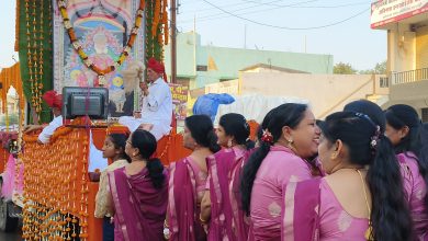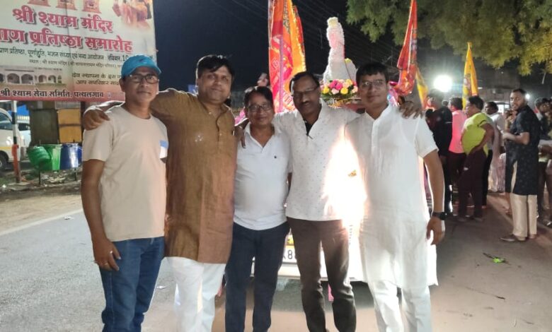 श्री श्याम मंदिर प्रतिष्ठा समारोह के लिए खाटू धाम से श्याम शीश ,श्याम अखंड ज्योत लेकर श्याम भक्तों का जत्था पहुंचा पत्थलगांव