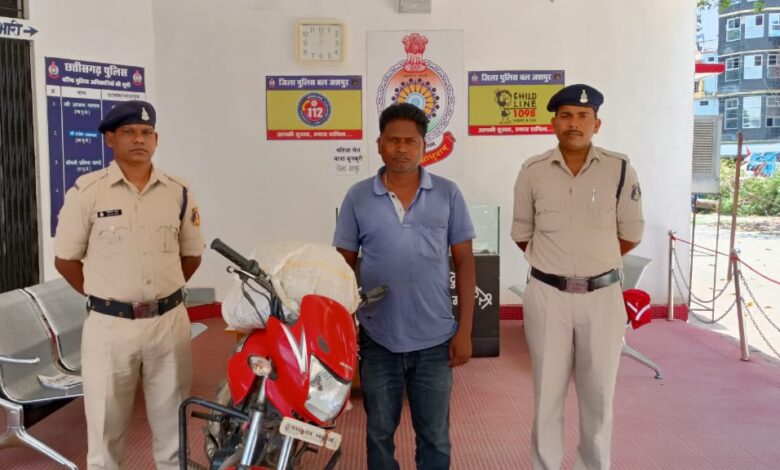 कुनकुरी पुलिस ने गांजा की तस्करी करने वाले आरोपी बाबूलाल सोरेन मय मोटरसाइकिल सहित गांजा पकड़ा