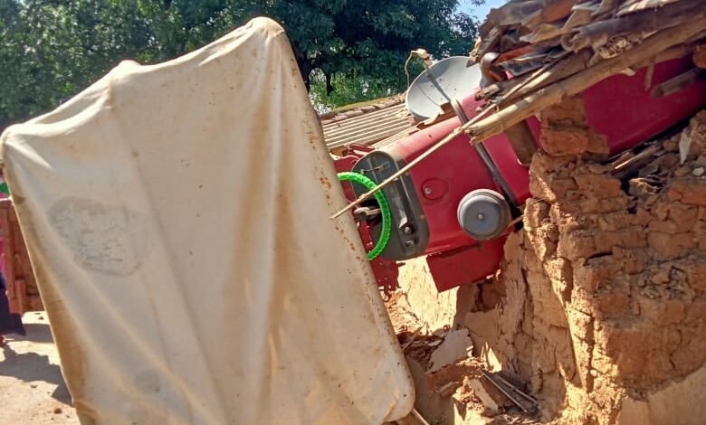 तेज रफ्तार ट्रैक्टर घर में जा घुसी बाल बाल बच्चे घरवाले दुर्घटना में ट्रैक्टर व खड़ी स्कूटी का निकला कचूमर
