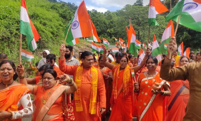*हमर तिरंगा यात्रा एवं कांवड़ यात्रा दोनों एक साथ बगीचा के राजपुरी से अहिनमंडा धाम में शामिल हुए विधायक विनय भगत*