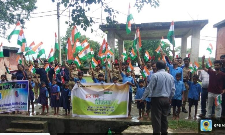 पत्थलगांव ठाकुर शोभासिंह महाविद्यालय के एनसीसी कैडेट्स ने बाइक में निकाली “तिरंगा रैली” ग्रामीण क्षेत्रों में जाकर हर घर तिरंगा अभियान सफल बनाने लोगों से कर रहे अपील
