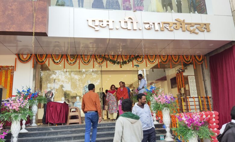 एमपी गारमेंट के भव्य शोरूम का हुआ शुभारंभ शुभारंभ के अवसर पर ग्राहकों की जुटी भीड़ शुभारंभ पर एमपी गारमेंट के संचालक ने खरीदी पर दिए आकर्षक गिफ्ट के पैकेज