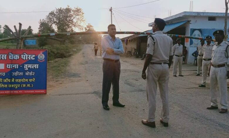 मुकेश अग्रवाल/पत्थलगांव। दिनांक 30.10.2021 को पुलिस अधीक्षक जशपुर विजय अग्रवाल द्वारा थाना तुमला क्षेत्रांतर्गत ग्राम कोल्हेनझरिया में लगाये गये पुलिस चेक पोस्ट बेरियर एवं थाना तपकरा अंतर्गत लावाकेरा चेक पोस्ट का आकस्मिक निरीक्षण किया गया। निरीक्षण दौरान पुलिस के समस्त अधि./कर्मचारी अपने कर्तव्य पर उपस्थित मिले। पुलिस अधीक्षक ने उक्त चेक पोस्ट को संवेदनशील बताते हुये उपस्थित अधि./कर्मचारियों से अत्यंत सजगता से ड्यूटी करने निर्देशित किया। निरीक्षण दौरान उपस्थित अधि./कर्मचारियों को प्रत्येक वाहन को 24 X 7 घंटे सख्ती से चेकिंग करने हेतु निर्देषित किया गया।