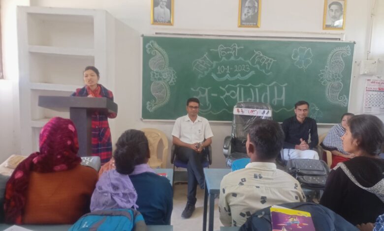 शोभा सिंह शासकीय महाविद्यालय पत्थलगांव में दिनांक आज विश्व हिंदी दिवस पर हिंदी विभाग द्वारा कार्यशाला का आयोजन किया गया जिसमें वरिष्ठ प्राध्यापक डॉ बी. के. राय विभागाध्यक्ष इतिहास, प्रो आर. एस. कांत, प्रो टी आर पाटले विभागाध्यक्ष राजनीति, आईक्यूएसी समन्वयक सुश्री अनुपमा प्रधान, प्रो.एस के मारकंडे, विभागाध्यक्ष बॉटनी,अतिथि प्राध्यापक शैलेंद्र साहू, संजय बघेल, सुबलया प्रधान, जागृति पैंकरा सहित समस्त प्राध्यापक गण एवं छात्र छात्राएँ उपस्थित रहे। हिंदी प्रथम सेमेस्टर के छात्र निकेतन सुधार एवं छात्रा रितु प्रधान उपाध्यक्ष हिंदी परिषद ने भाषण एवं कविता की प्रस्तुति दी। प्राध्यापकों द्वारा हिंदी भाषा के समृद्ध इतिहास, वर्तमान स्थिति में इसका महत्व, हिंदी साहित्य आदि से संबंधित विषयों पर विस्तृत जानकारी दी गयी। कार्यक्रम का सफल संचालन श्रीमती हुमा सिंह एवं सुश्री अल्पना कुजुर द्वारा किया गया। उन्होंने हिंदी की विकास यात्रा एवं हिंदी सर्वव्यापकता पर विचार प्रस्तुत किए। कार्यक्रम को संपन्न कराने में हिन्दी विभाग के स्नातकोत्तर विद्यार्थियों की मुख्य भूमिका रही।