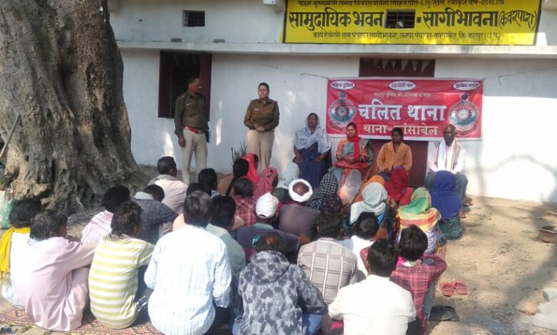 कांसाबेल थाना प्रभारी मल्लिका तिवारी ने चलित थाना लगाकर जन जागरूकता अभियान चलाया