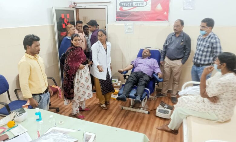 सिविल अस्पताल पत्थलगांव में लगा रक्तदान शिविर रक्तदान शिविर में बढ़ चढ़कर लिया हिस्सा