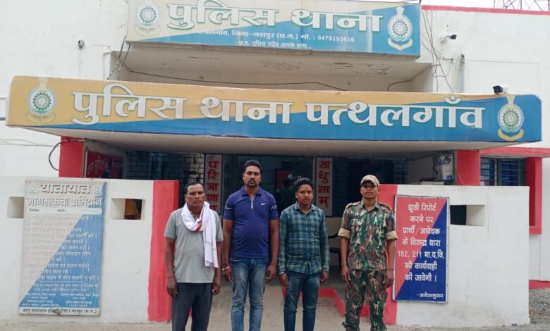 मामला इस प्रकार है कि प्रार्थी ओमप्रकाष लकड़ा उम्र 34 साल निवासी प्राथमिक स्वास्थ्य केन्द्र कोतबा ने दिनांक 14.02.2023 को थाना पत्थलगांव में रिपोर्ट दर्ज कराया कि इसे दिनांक 13.02.2023 को प्राथमिक स्वास्थ्य केन्द्र कोतबा से सी.एस.सी. पत्थलगांव से अंबिकापुर के लिये रिफर का आदेश मिला तब यह अपने इमरजेंसी मेडिकल टेक्निीशियन के साथ संजीवनी वाहन क्र. सी.जी. 04 एम.जेड. 1875 से मरीज को लेकर अंबिकापुर के लिये निकले थे जो सुखरापारा के पास 02 अज्ञात मोटर सायकल चालक द्वारा मरीज वाहन को रोकवाये तथा अमर्यादित व्यवहार करते हुये कहने लगे कि तुम लोग एक्सीडेंट किये हो, गाड़ी मुड़वाकर रिफर मरीज के साथ करमीटिकरा लेकर आये जहां इनके साथ संतु राम, राजू राम, शिव एवं अन्य कुछ लोगों द्वारा मारपीट कर संजीवनी वाहन को तोड़फोड़ किया गया। प्रार्थी की रिपोर्ट पर आरोपियों के विरूद्ध धारा 341, 294, 323, 147, 148 भा.द.वि. लो.नि.नु.अधि. की धारा 3 का अपराध दर्ज कर विवेचना में लिया गया। प्रकरण के आरोपीगण घटित कर फरार हो गये थे।प्रकरण की विवेचना दौरान मुखबीर सूचना पर आरोपी संतु सिदार, राजू केसर एवं शिवप्रसाद सिदार के पत्थलगांव क्षेत्र में मौजूद होने की सूचना मिलने पर तत्काल पुलिस टीम द्वारा दबिश देकर घेराबंदी कर अभिरक्षा में लिया गया। पूछताछ में आरोपियों ने अपने अन्य साथियों के साथ मिलकर उक्त अपराध को घटित करना स्वीकार किये हैं। *आरोपीगण 1-संतु सिदार उम्र 55 साल निवासी करूमहुआ थाना पत्थलगांव, 2-राजू केसर उम्र 37 साल निवासी करूमहुआ, 3-शिवप्रसाद सिदार उम्र 28 साल निवासी करूमहुआ थाना पत्थलगांव* को दिनांक 16.03.2023 को गिरफ्तार कर न्यायिक अभिरक्षा में भेजा गया है। प्रकरण के अन्य फरार आरोपियों की लगातार पतासाजी की जा रही है।