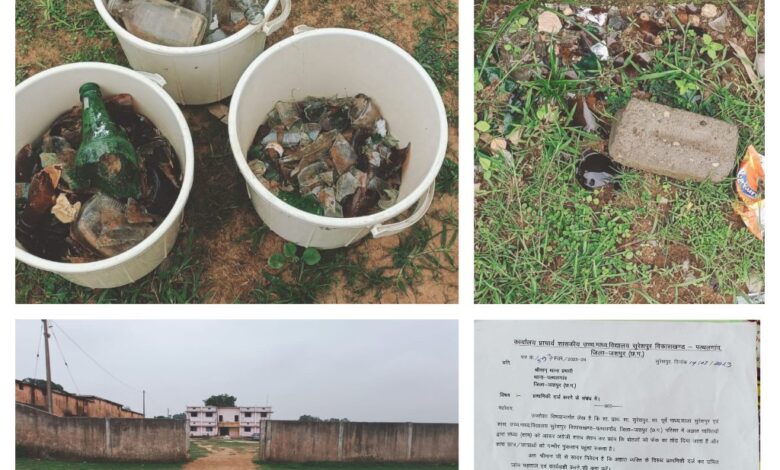 सुरेश पुर पंचायत का खेल मैदान बना शराबियों के लिए शराब का अड्डा
