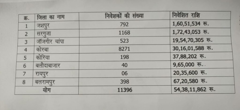 तहत अपराध पंजीबद्ध कर विवेचना में लिया गया आरोपी फूलचंद बिसेन अपने 04 अन्य साथियों के साथ मिलकर जशपुर थाना क्षेत्र के कुल 785 निवेशकों से स. 1,59,85,534 /- (एक करोड़ उनसठ लाख, पचासी हजार पाँच सौ चौतीस रू. ठगी करना पाया गया।