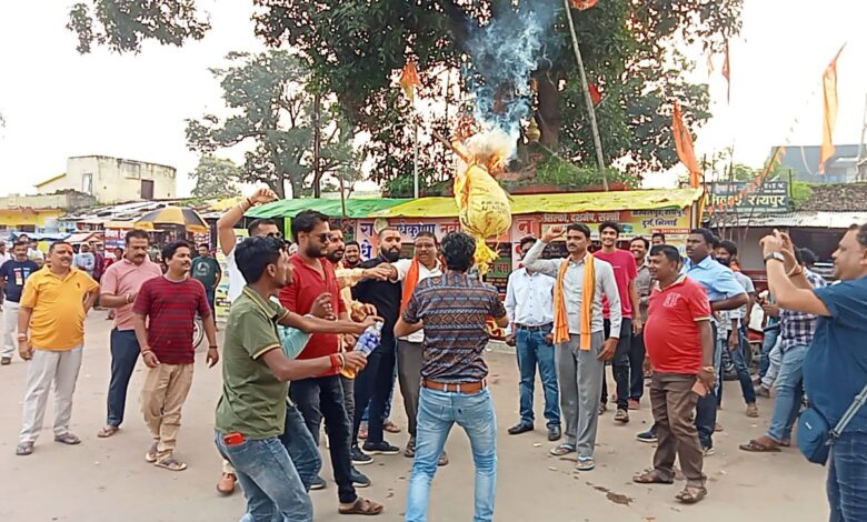 संसदीय सचिव युडी मिंज का पत्थलगांव भाजपा कार्यकर्ताओं ने किया चौक में पुतला दहन