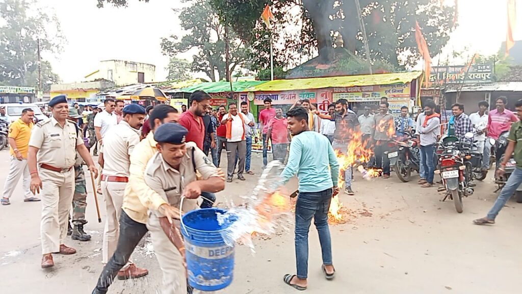 पत्थलगांव । संसदीय सचिव यूडी मिंज के विरोध में पत्थलगांव के भाजपा कार्यकर्ताओं ने सोमवार को इंदिरा गांधी चौंक समीप पुतला दहन किया। इस दौरान भाजपा कार्यकर्ताओं ने संसदीय सचिव की खिलाफ जमकर नारेबाजी की है। वहीं मौजूद पुलिस और कार्यकर्ताओं के बीच पुतला दहन को लेकर झूमा झपटी भी हुई। विदित हो कि श्री सर्वेश्वरी समूह द्वारा संचालित सोगडा के अघोरेश्वर आश्रम पर एक शासकीय अधिकारी के पोस्टिंग मामले का गंभीर आरोप लगाने वाले कांग्रेस के कुनकुरी विधायक और संसदीय सचिव यूडी मिंज का पुतला दहन इंदिरा गांधी चौंक पहुंचकर भाजपाइयों ने किया। इस दौरान आक्रोश व्यक्त करते हुवे कार्यकर्ताओं ने संसदीय सचिव के विरुद्ध जमकर नारेबाजी की।इस दौरान भाजपा कार्यकर्ताओं ने संसदीय सचिव पर गंभीर आरोप लगा आश्रम विरोधी भी बताते हुए कहा है कि विधायक यूडी मिंज का एक लेटर वायरल हुआ है जिसमें जशपुर में स्थित सोगड़ा आश्रम से करोड़ों हिंदुओं की आस्था जुड़ी हुई है। उस पर संसदीय सचिव ने दुनिया भर से करोड़ों हिंदूओ की आस्था और भावना को ठेस पहुंचाते हुए एक धार्मिक समूह पर गंभीर आरोप लगाया है। उन्होंने आरोप लगाते हुए कहा है कि विधायक यूडी मिंज भगवा चोला पहनकर हिंदुओं के बीच जाकर ढकोसला करने वाले विधायक है। उन्होंने कहा है हिंदू संस्कृति को अपमानित करने की और सोगड़ा आश्रम को लेकर जारी हुए लेटर से आहत होते हुए घोर निंदा करते है।आने वाले समय में जनता उन्हें भारी मतों से हराकर सबक सिखाने की ठान ली है। इस दौरान भाजयुमो मंडल पत्थलगांव के कार्यकर्ता भरी संख्या में मौजूद रहे।