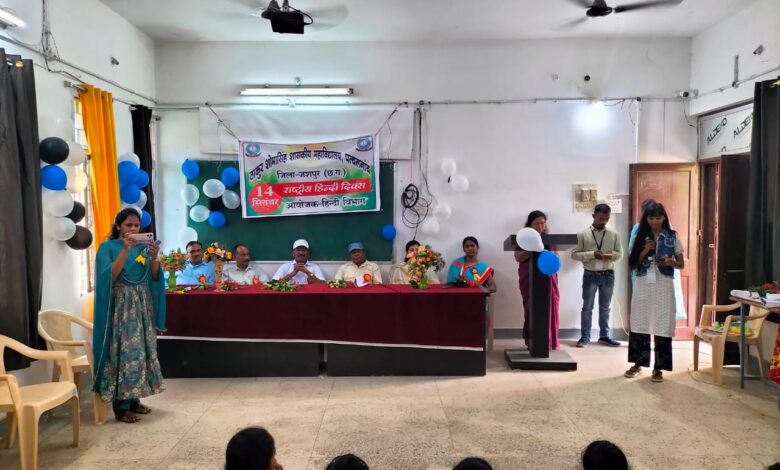 ठाकुर शोभा सिंह शासकीय महाविद्यालय पत्थलगांव मेंआज राष्ट्रीय हिंदी दिवस के अवसर पर हिंदी विभाग द्वारा कार्यक्रम का आयोजन किया गया। कार्यक्रम में बतौर मुख्य अतिथि के रूप में संस्था के पूर्व प्राचार्य एवं हिन्दी साहित्य के प्रो. श्री डी. के. अंब्रेला उपस्थित रहे । कार्यक्रम की अध्यक्षता महाविद्यालय के प्राचार्य डॉ. बी.के. राय ने की।कार्यक्रम की शुरुआत अतिथियों द्वारा मां सरस्वती की प्रतिमा पर दीप प्रज्वलित करके किया गया।अतिथियों के स्वागत के लिए कु.ट्विंकल नाग ,गिरजा यादव, निर्मला यादव ,गीता नाग , निर्भया एक्का एवं साथियों द्वारा स्वागत गीत प्रस्तुत कर पुष्प गुछ प्रदान करते हुए स्वागत किया गया Iइसके पश्चात कु.निर्मला यादव एवं रेनू एक्का के द्वारा ‘हिंदी भाषा राष्ट्र की भाषा ‘गीत पर नृत्य प्रस्तुत कर हिंदी भाषा की प्रासंगिकता पर प्रकाश डाला गया। प्रो. जे.के. भगत ने अपने उद्बोधन में राष्ट्रीय हिन्दी दिवस पर सभी को शुभकामनाएं दिये एवं आज के दौर में हिन्दी की घटती रुझानों पर चिंता जाहिर करते हुए हमारे देश की राष्ट्र भाषा को संरक्षित एवं संवर्धित करने के लिए सभी देशवासियों को संकल्पित होने का क्षण बताया। वरिष्ठ प्राध्यापक प्रो. आर. एस. कान्त ने कहा कि हिन्दी भाषा में हमारे देश की संस्कृति, एवं सभ्यता का छाप है इसलिए इसे अक्षुण्ड बनाये रखने के लिएआज के अवसर पर सबको संकल्प लेना चाहिए। अध्यक्षीय उद्बोधन में महाविद्यालय के प्राचार्य डॉ. राय ने उपस्थित सभी छात्र-छात्राओं और सभी स्टाफ को शुभकामनाएं देते हुए कहा कि हिन्दी हमारे देश की राष्ट्र भाषा है इसमें देश की विविधता में एकता का भाव प्रकट होता है यह पूरे देश को एकता के सूत्र में बांधने की क्षमता रखताहै इस लिए किसी भी सूरत में इसका महत्व को कम होने नहीं देना चाहिए। उद्बोधन के क्रम में मुख्य अतिथि प्रो. अम्ब्रेला ने हिन्दी भाषा की महत्व पर प्रकाश डालते हुए कहा कि हिन्दी हमारी राष्ट्र भाषा के साथ- साथ हमारे देश की मातृभाषा भी है।देश में विभिन्न आक्रमणकारियों का उल्लेख करते हुए कहा कि हिन्दी भाषा में कई भाषाओं का प्रभाव रहा जिसके कारण पूरे देश वासियों के लिए हिन्दी बोलना और समझना आसान है, हिन्दी भाषा में अन्य भाषा को समाहित करने की ताकत है, हिन्दी भाषा व्याकरण सम्मत है इसमें संस्कार एवं अपनापन का भाव छिपा हुआ है इसका महत्व को कभी कमतर नहीं आंका जा सकता है शायद इसलिए संविधान सभा द्वारा इसे राष्ट्र भाषा के रूप में स्विकार किया गया है, उन्होंने हिन्दी के अध्येता छात्र- छात्राओं को हिन्दी विषय पर गहन अध्ययन कर शोध कार्य के लिए आग्रह किया।