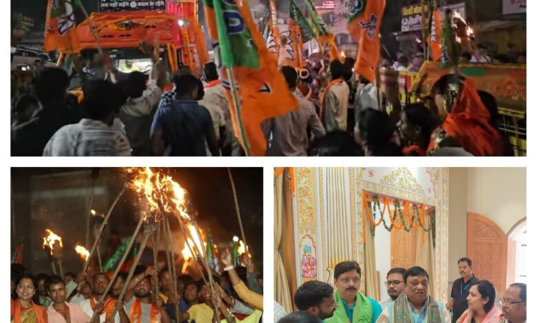 पत्थलगांव में मसाल रैली के साथ किया गया भव्य स्वागत