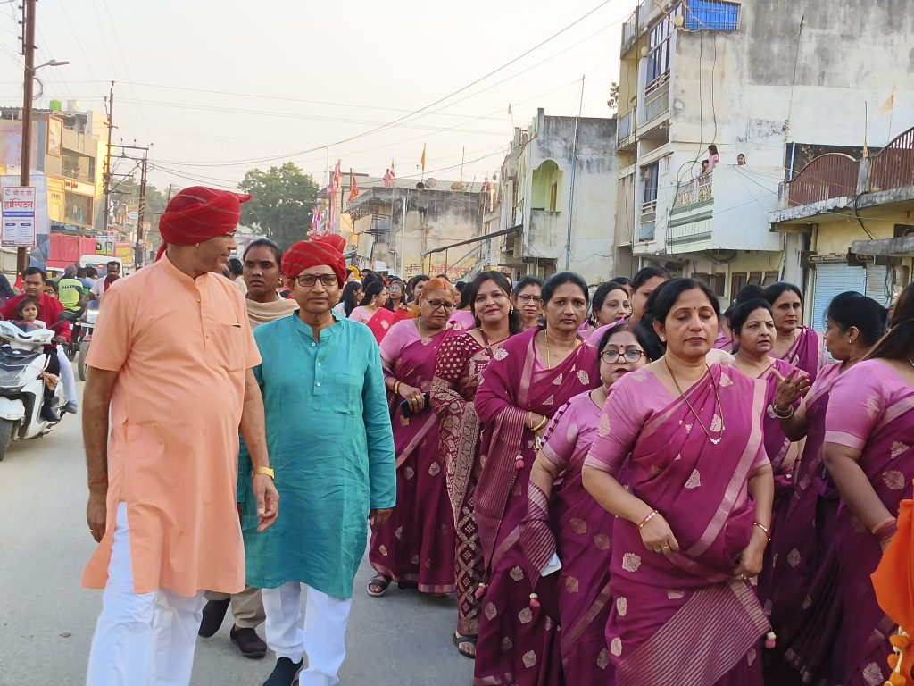 एक कलर के परिधान पहनी महिलाएं व कुर्ता पजामा पहने नवयुवकों रहे शोभायात्रा का आकर्षण का केंद्र