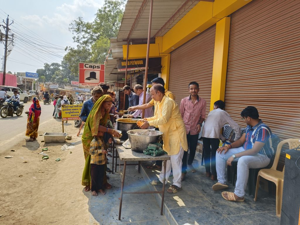 प्रतिदिन भंडारे के प्रसाद में लग रही प्रसाद ग्रहण करने वालों की भीड़
