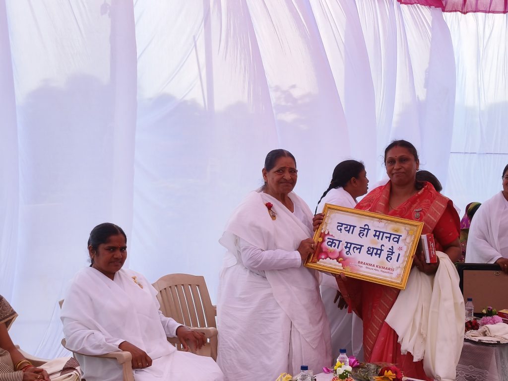 ब्रह्माकुमारी ईश्वरीय विश्वविद्यालय के लिए जमीन दान करने वाले पत्थलगांव विधायक राम पुकार सिंह के साथ शिशिर सिंह एवं उनके परिवार को स्मृति चिन्ह व भेंट देखकर स्वागत किया गया।