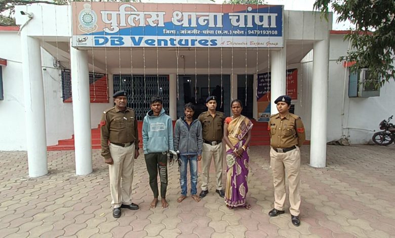 चांपा क्षेत्र के शराब दुकान के दो गार्ड की हत्या के मामले में पुलिस को मिली सफलता तीन आरोपी को किया गिरफ्तार लूट की नीयत से की गई थी हत्या