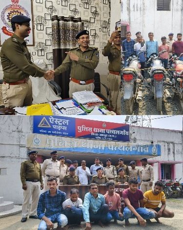 जशपुर पुलिस अधीक्षक द्वारा अपने पत्थलगांव के पहले थाना निरीक्षण के दौरान पत्थलगांव पुलिस एसडीओपी हरीश पाटिल, थाना प्रभारी भानु प्रताप चंद्राकर एवं पुलिस के अधिकारी, कर्मचारियों को चोरी के मामलों को सुलझाने के लिए कई प्रकार के टिप्स दिए गए थे इसके बाद पत्थलगांव पुलिस द्वारा पुलिस अधीक्षक शशि मोहन सिंह के निर्देशों को एवं बताई गई बारीकियां का विस्तार करते हुए पत्थलगांव पुलिस को मोटरसाइकिल चोरी पकड़ने में सफलता मिली। पत्थल गांव पुलिस द्वारा संदेह के आधार पर बागे अकरम उर्फ गुड्डू निवासी पेठ थाना सीतापुर को पकड़ा गया इसके बाद पुलिस द्वारा कड़ाई से पूछताछ करने पर गुड्डू द्वारा बताया गया कि मोहम्मद हसनैन उर्फ गल्ला साहिबे अकीदत उर्फ नंदू के साथ मिलकर पत्थलगांव थाना क्षेत्र के अलावा अन्य क्षेत्रों से मोटरसाइकिल की चोरी की गई है वहीं पुलिस ने तत्काल हसनैन उर्फ गल्ला , साहिबे अकीदत उर्फ नंदू को हिरासत में लेकर पूछताछ करने पर उन्होंने बताया कि तीनों द्वारा मोटरसाइकिल चोरी कर शाहनवाज खान उर्फ सोनू को चोरी की मोटरसाइकिल देकर सोनू द्वारा ही मोटरसाइकिल बिक्री की जाती थी वहीं सोनू द्वारा बताया गया कि शाहनवाज खान उर्फ सोनू ,शहीद रजा एवं जयलाल रावत के पास गाड़ियों को बिक्री के लिए रखा हुआ जप्त किया गया जिसमें से 13 मोटरसाइकिल शहनवाज उर्फ सोनू, 6 मोटरसाइकिल शहीद रजा के पास एवं 5 मोटरसाइकिल बाजे अकरम उर्फ गुड्डू ,हसनैनुल्लाह उर्फ गल्ला साहिब अकीदत उर्फ नंदू के पास से बरामद की गई सभी मोटरसाइकिल पत्थलगांव, कोरबा ,अंबिकापुर, लैलूंगा, सीतापुर से चोरी की गई है 24 मोटरसाइकिल में 20 एचएफ डीलक्स, दो पल्सर, एक पैशन प्रो ,एक प्लैटिना मोटरसाइकिल जिसकी कीमत₹नौ लाख आंकी गई है को बरामद किया गया। इन मोटरसाइकिलों में पत्थलगांव थाना क्षेत्र से चोरी की गई 6 मोटरसाइकिल है बरामद की गई है बाकी अन्य मोटरसाइकिल अन्य थाना क्षेत्र की है ।प्रकरण में बागे अकरम उर्फ गुड्डू पिता खलील अली 23 साल पेठ सीतापुर ,मोहम्मद हसनैन उर्फ गल्ला पिता मोहम्मद हजरत अली 22 साल पेठ सीतापुर निवासी, साहिबे अकीदत उर्फ सोनू पिता इनामुल खान 31 साल मुडागांव लैलूंगा ,शहीद रजा पिता रमजान उल हक 24 साल तारागढ़ पत्थलगांव ,जय लाल रावत पिता चुन्गू राम 42 साल बटुराबाहर निवासी को गिरफ्तार करते हुए धारा 379, 411 ,413, 414, 34 के तहत जेल की सलाखों के पीछे भेजा गया।