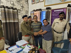 पुलिस अधीक्षक शशि मोहन सिंह के प्रथम पत्थलगांव थाना निरीक्षण के दौरान पत्थलगांव के पत्रकार जितेंद्र गुप्ता एवं मुकेश अग्रवाल द्वारा नगर में लगातार हो रही मोटरसाइकिल चोरी एवं यातायात व्यवस्था पर पुलिस अधीक्षक का ध्यान आकृष्ट करवाया गया था इसके बाद पुलिस अधीक्षक द्वारा तत्काल ही पत्थलगांव पुलिस टीम को मोटरसाइकिल चोरी पकड़ने के लिए नए तरीकों को बताया गया था जिसके लिए आज जशपुर पुलिस अधीक्षक द्वारा पत्थलगांव के पत्रकार मुकेश अग्रवाल एवं जितेंद्र गुप्ता की विशेष सहयोग के लिए पीठ थपथपाई।