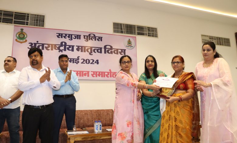 पुलिस महानिरीक्षक सरगुजा रेंज के गरिमामयी उपस्थिति मे अंतर्राष्ट्रीय मातृत्व दिवस के अवसर पर मातृत्व सम्मान समारोह का किया आयोजन शहीद पुलिसकर्मियों की माताओ एवं शिक्षा एवं खेलकूद मे अव्वल आए पुलिस परिवार के बच्चों की माताओ कों किया गया सम्मान शहीद परिवार की माताओ कों शाल श्रीफल प्रदान कर किया गया सम्मनित