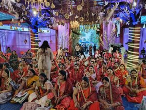 बाजार पर दुर्गा उत्सव समिति में बनभौरी पाठ का हुआ आयोजन सैकड़ो की संख्या में महिलाओं ने बनभौरी पाठ में निभाई भागीदारी