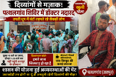 दिव्यांगों से मज़ाक! पत्थलगांव शिविर में डॉक्टर नदारद, तपती धूप में घंटों तड़पते रहे सैकड़ों लोग”